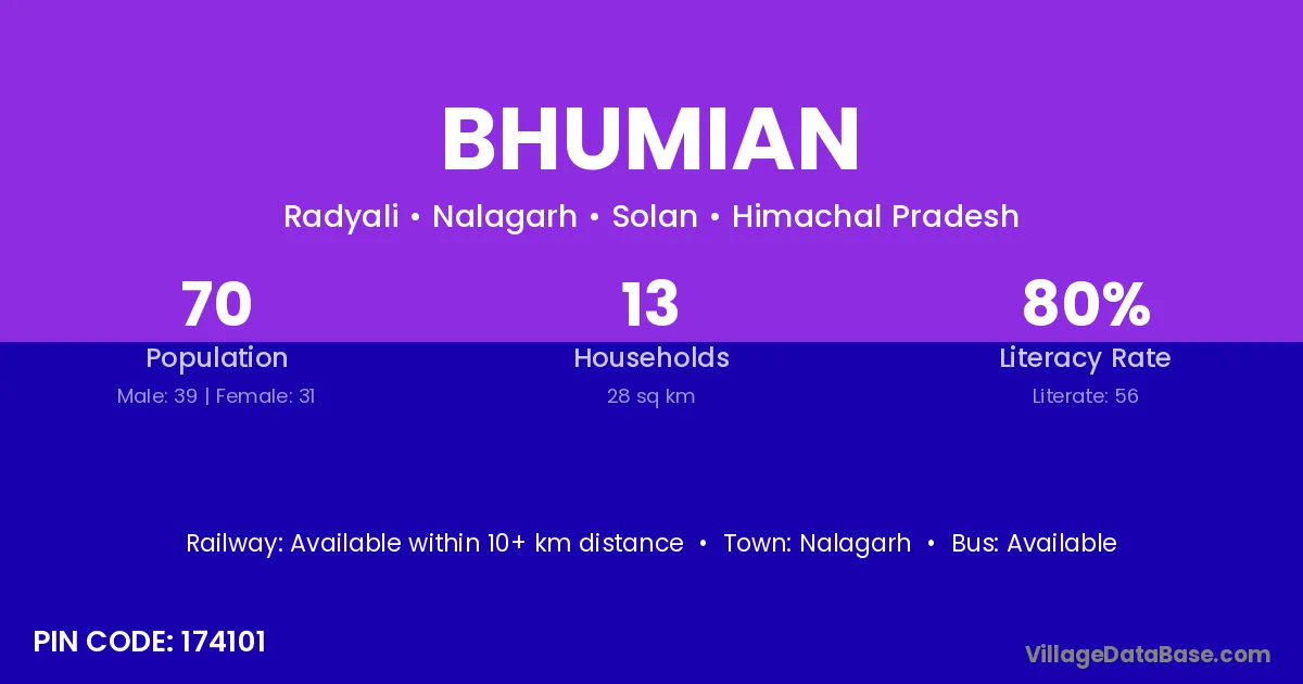 Nalagarh is the nearest town to Bhumian village for major economic activities
