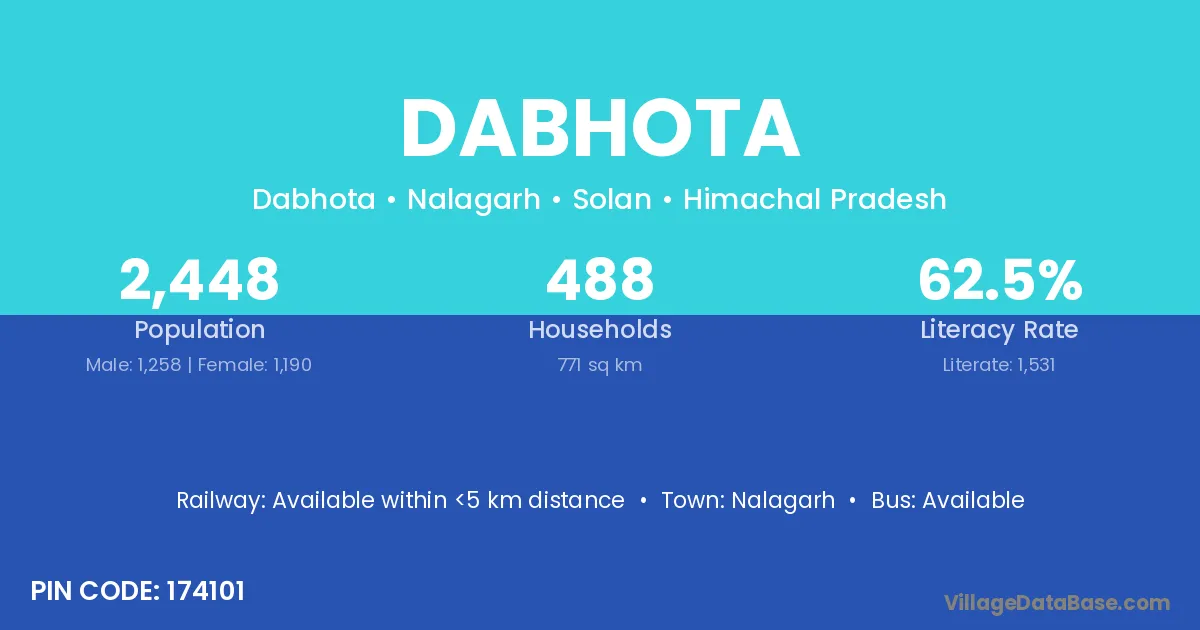 Nalagarh is the nearest town to Dabhota village for major economic activities