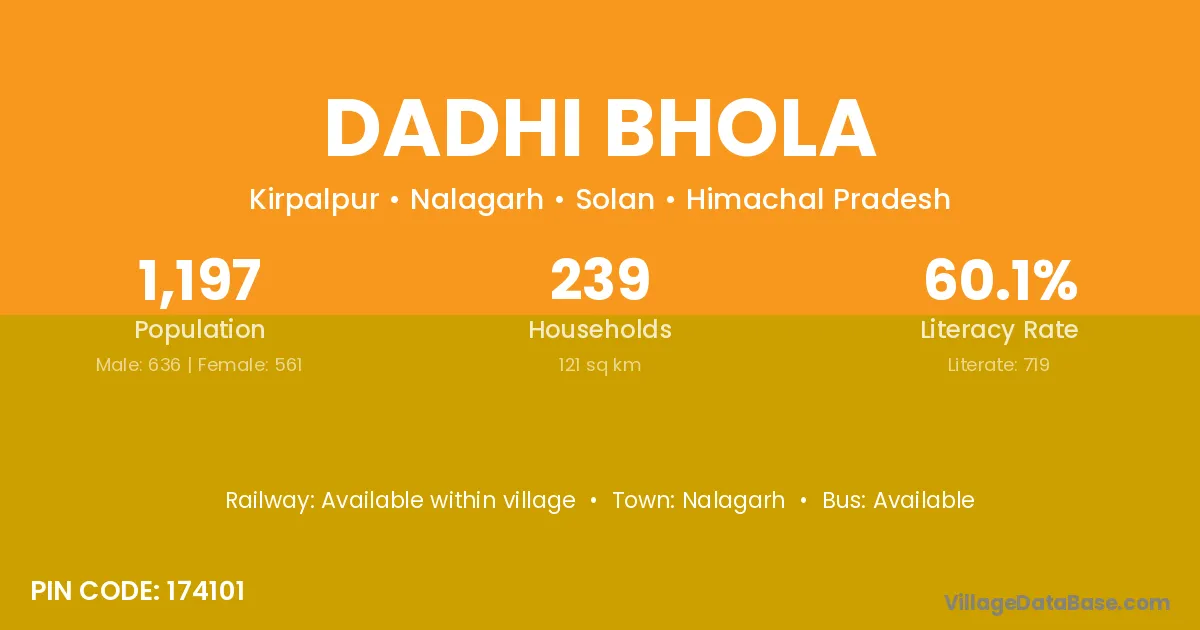 Nalagarh is the nearest town to Dadhi Bhola village for major economic activities
