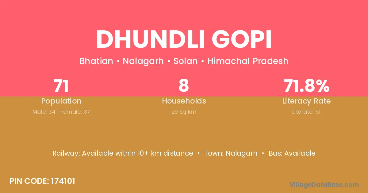 Nalagarh is the nearest town to Dhundli Gopi village for major economic activities