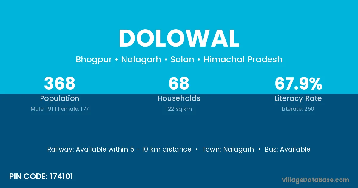 Nalagarh is the nearest town to Dolowal village for major economic activities