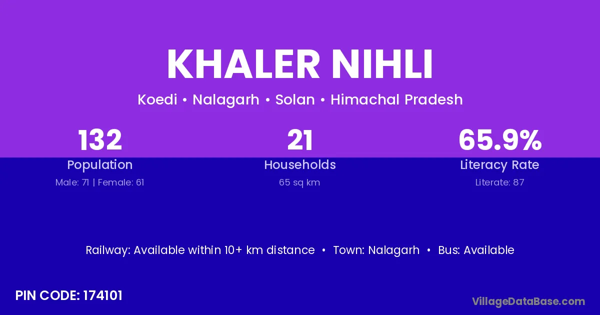 Nalagarh is the nearest town to Khaler Nihli village for major economic activities