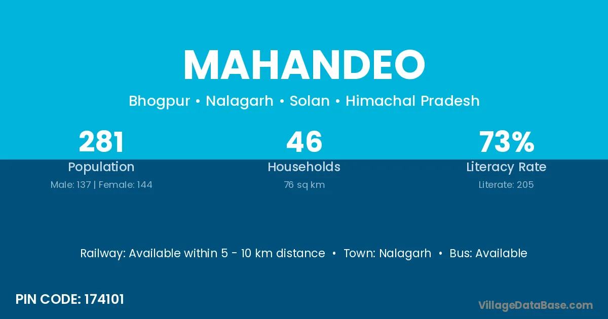 Nalagarh is the nearest town to Mahandeo village for major economic activities