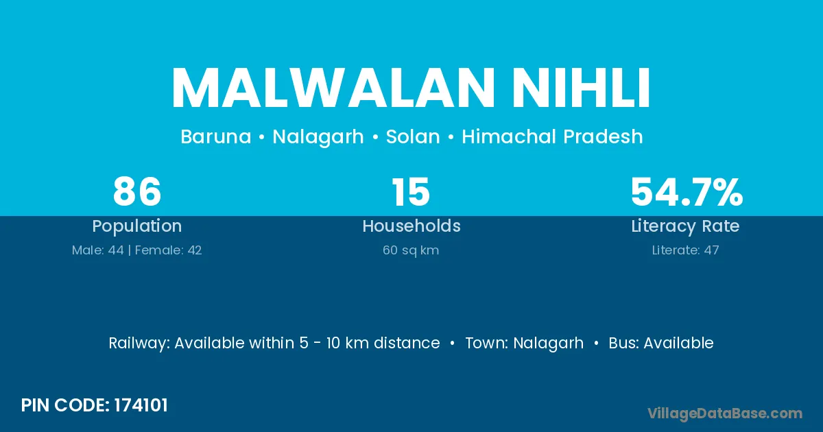 Malwalan Nihli village has a total population of 86 people, of which 44 are males and 42 are females.