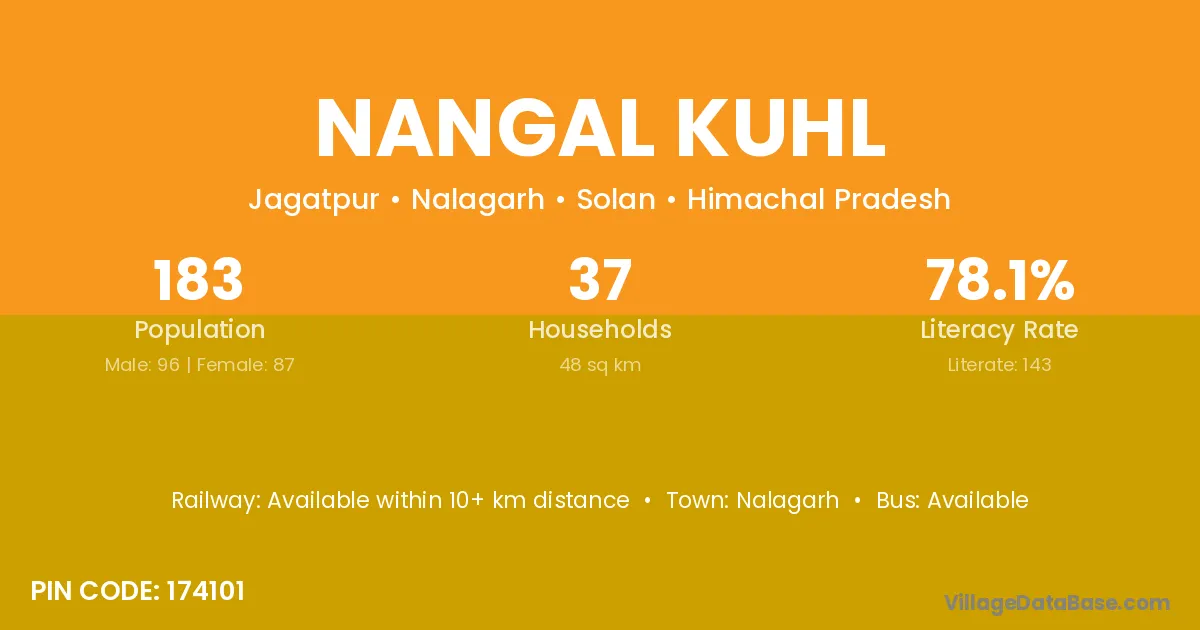 Nangal Kuhl village has a total population of 183 people, of which 96 are males and 87 are females.