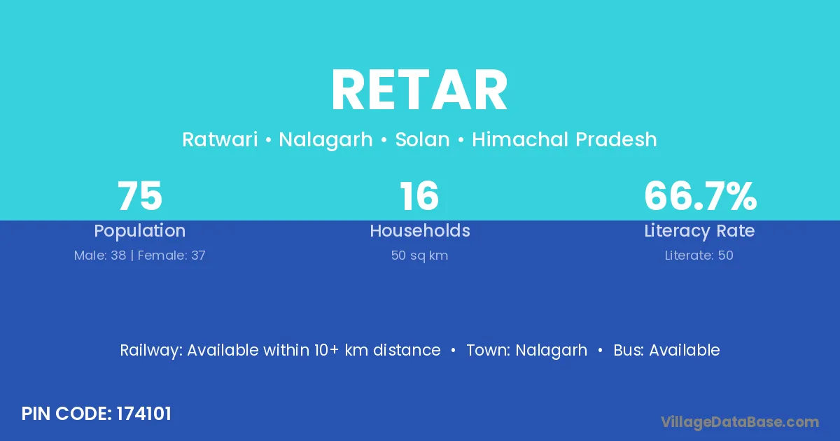 Nalagarh is the nearest town to Retar village for major economic activities