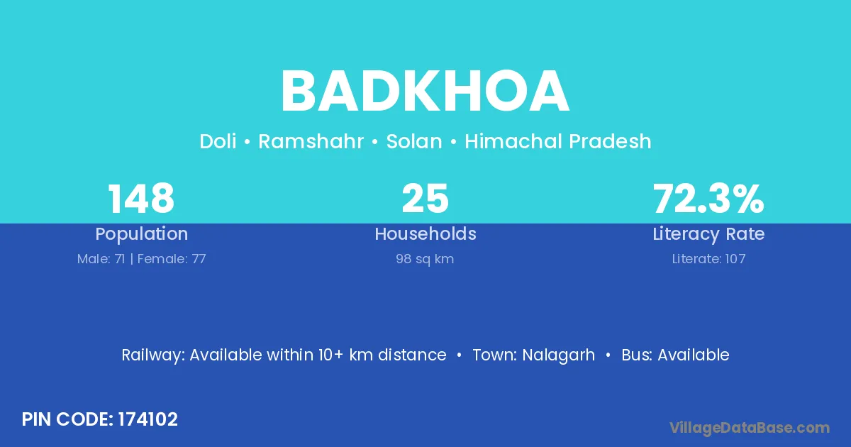 Nalagarh is the nearest town to Badkhoa village for major economic activities