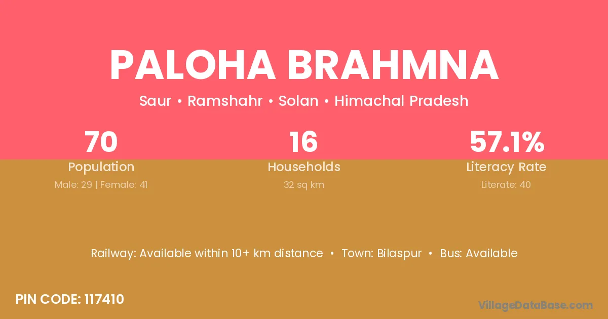 Paloha Brahmna village has a total population of 70 people, of which 29 are males and 41 are females.