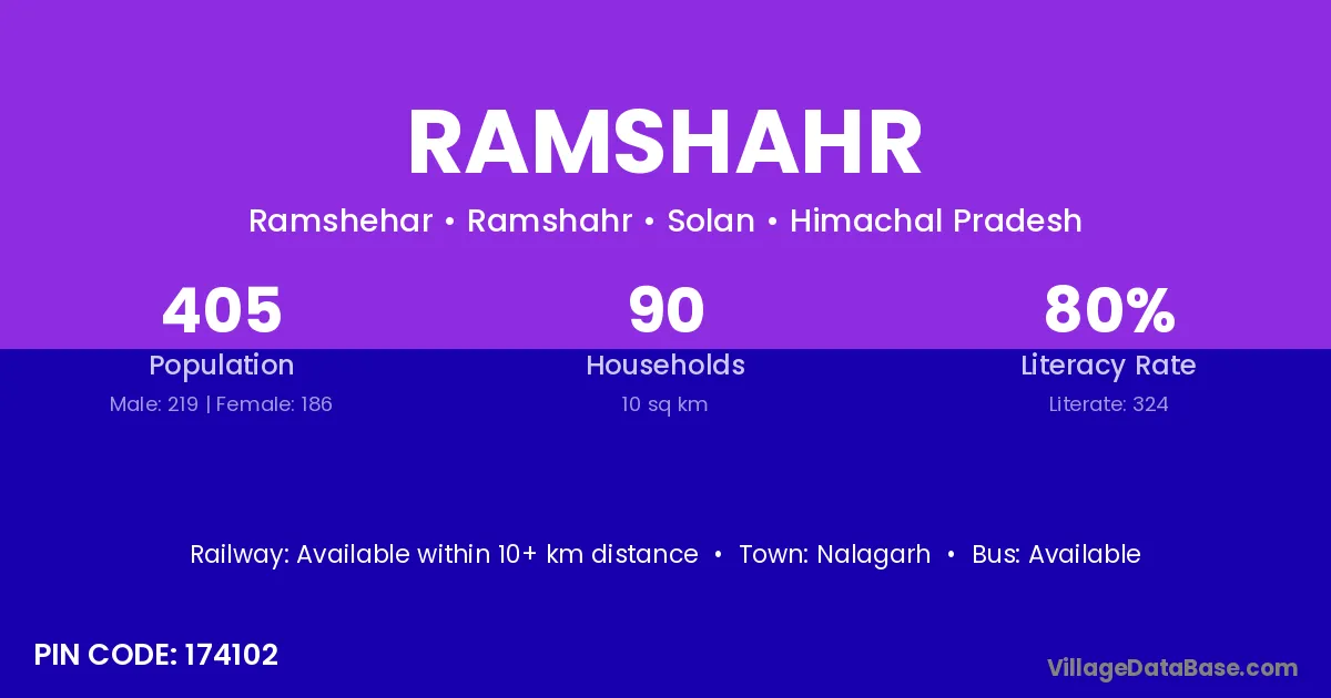 Nalagarh is the nearest town to Ramshahr village for major economic activities