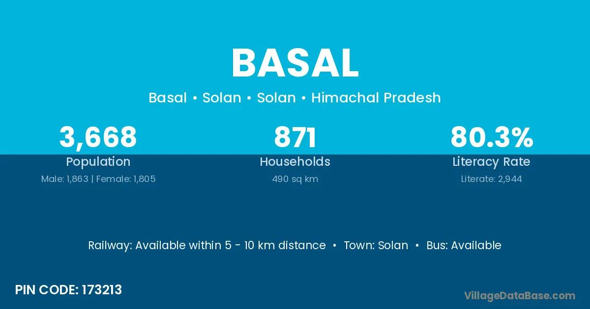 Solan is the nearest town to Basal village for major economic activities