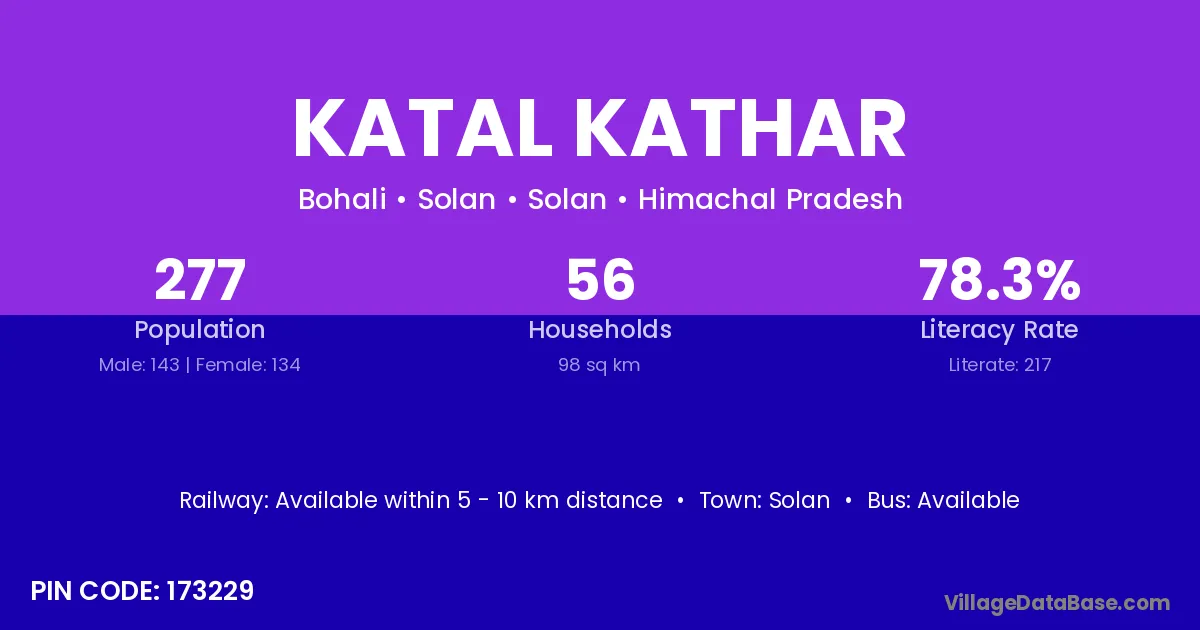 Solan is the nearest town to Katal Kathar village for major economic activities