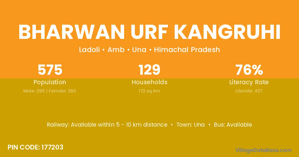 Bharwan Urf Kangruhi village has a total population of 575 people, of which 295 are males and 280 are females.