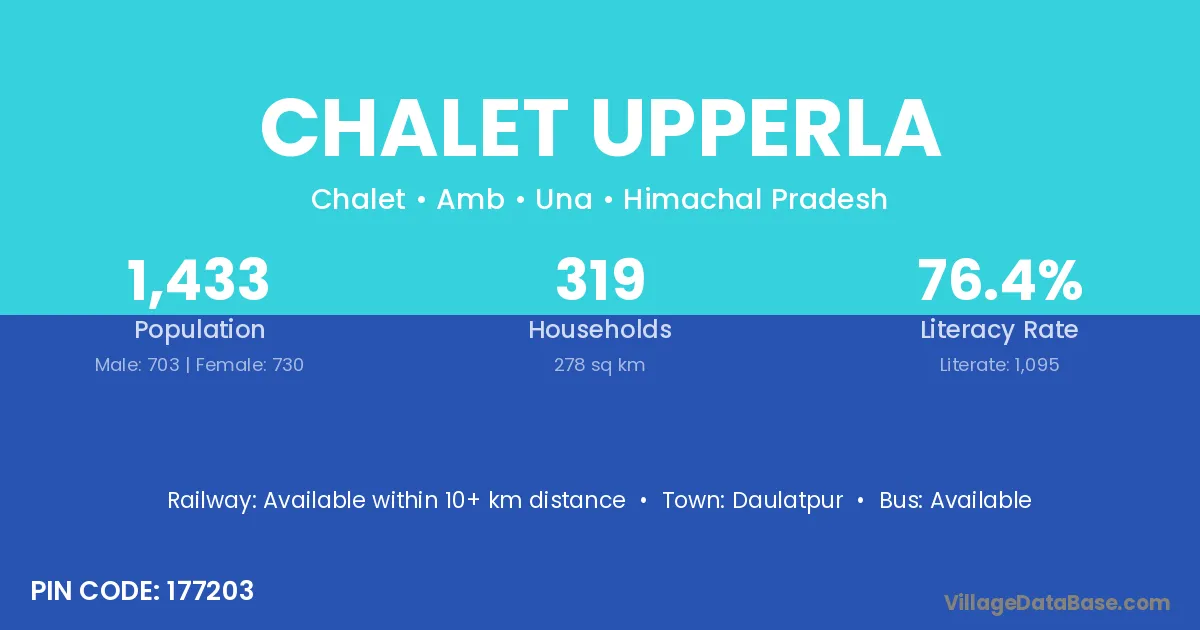 Chalet Upperla village has a total population of 1,433 people, of which 703 are males and 730 are females.