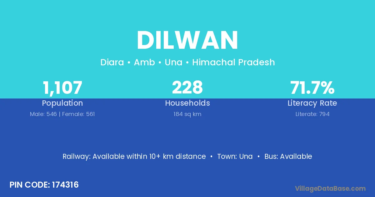 Dilwan village has a total population of 1,107 people, of which 546 are males and 561 are females.