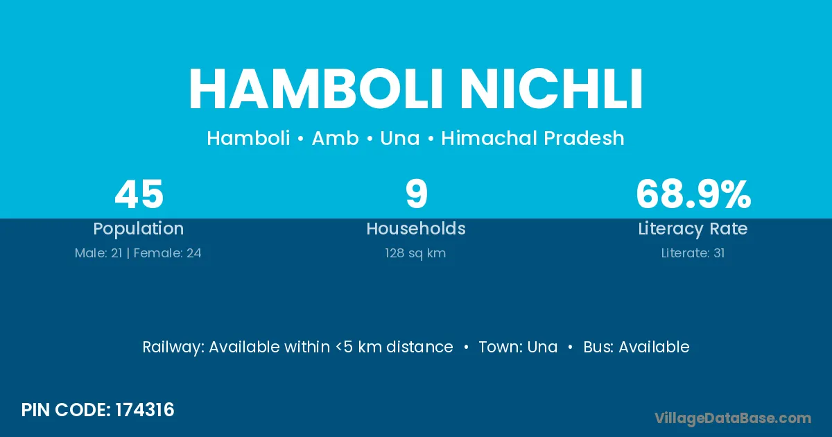 Hamboli Nichli village has a total population of 45 people, of which 21 are males and 24 are females.