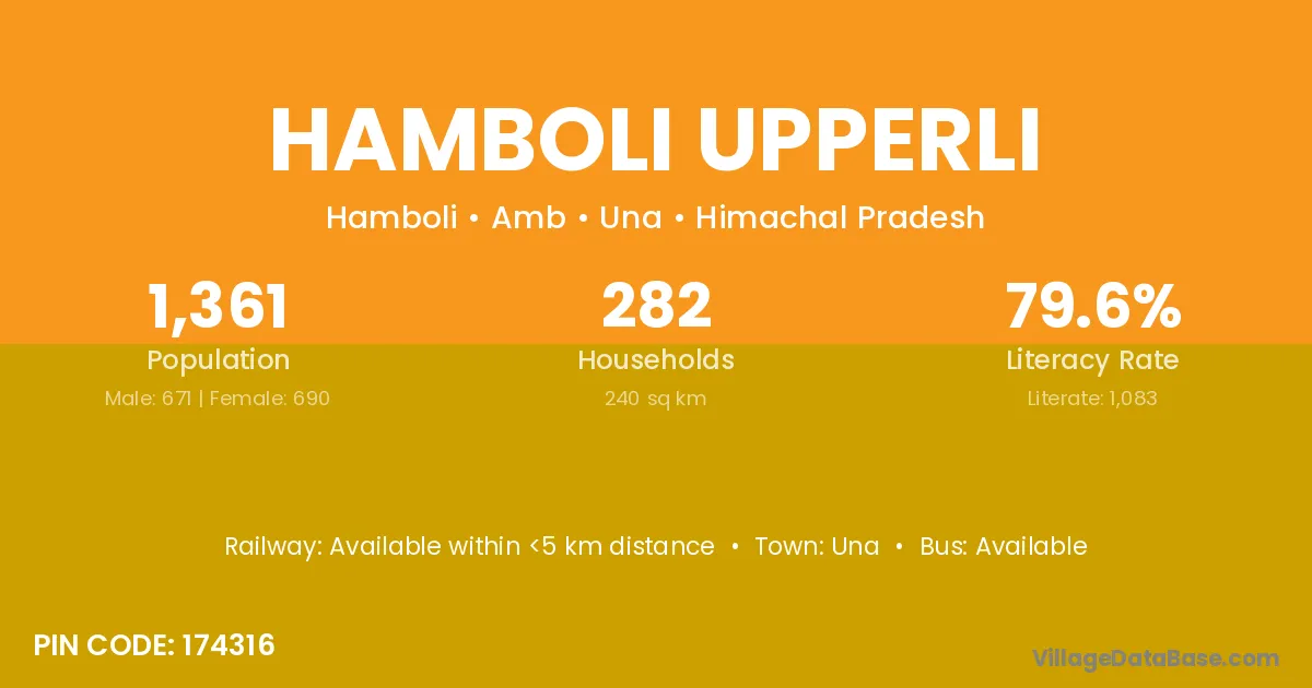 Hamboli Upperli village has a total population of 1,361 people, of which 671 are males and 690 are females.
