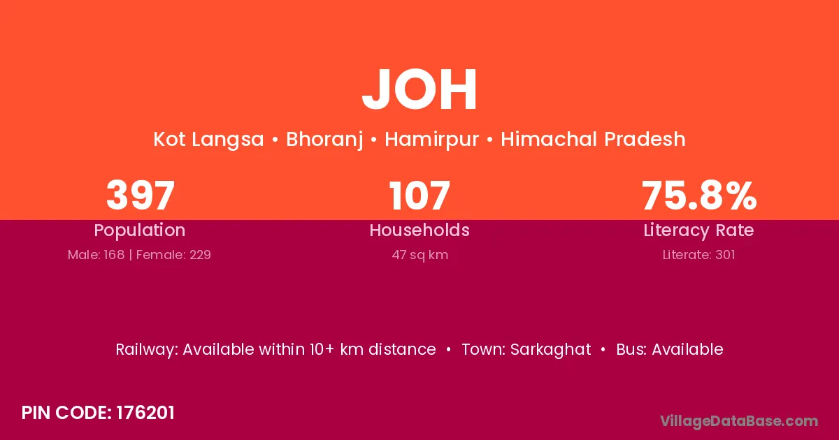 According to Census 2011 information, the village code of Joh village is 177203.