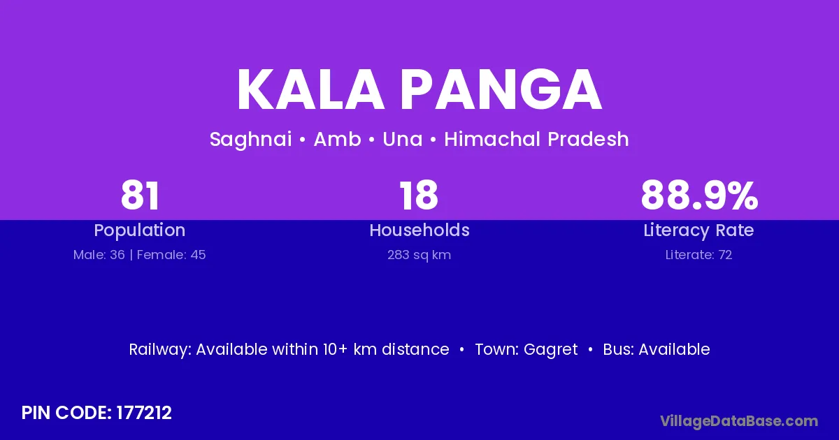 Kala Panga village has a total population of 81 people, of which 36 are males and 45 are females.
