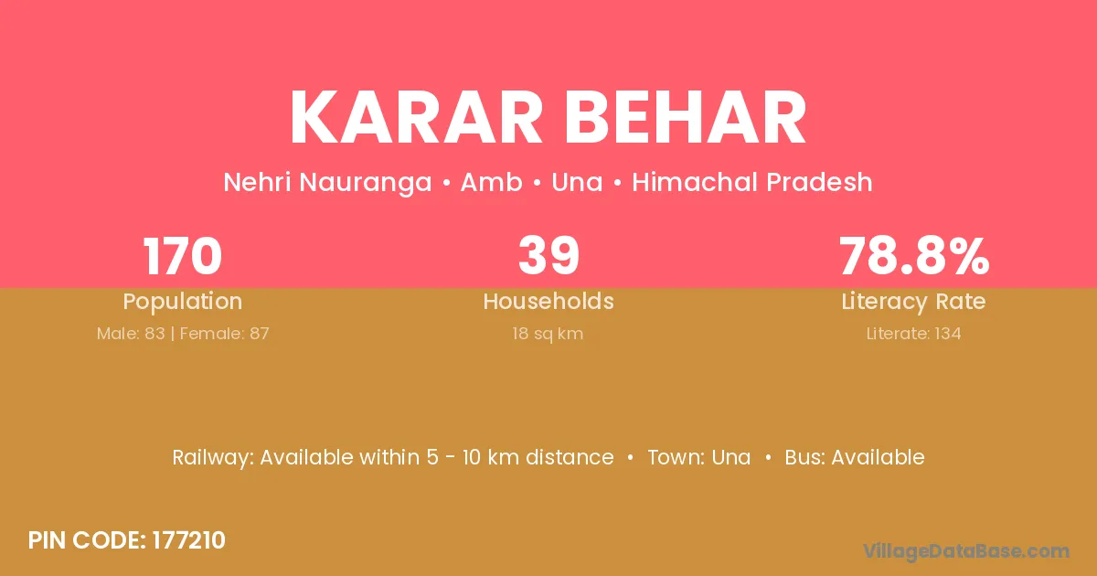 Karar Behar village has a total population of 170 people, of which 83 are males and 87 are females.
