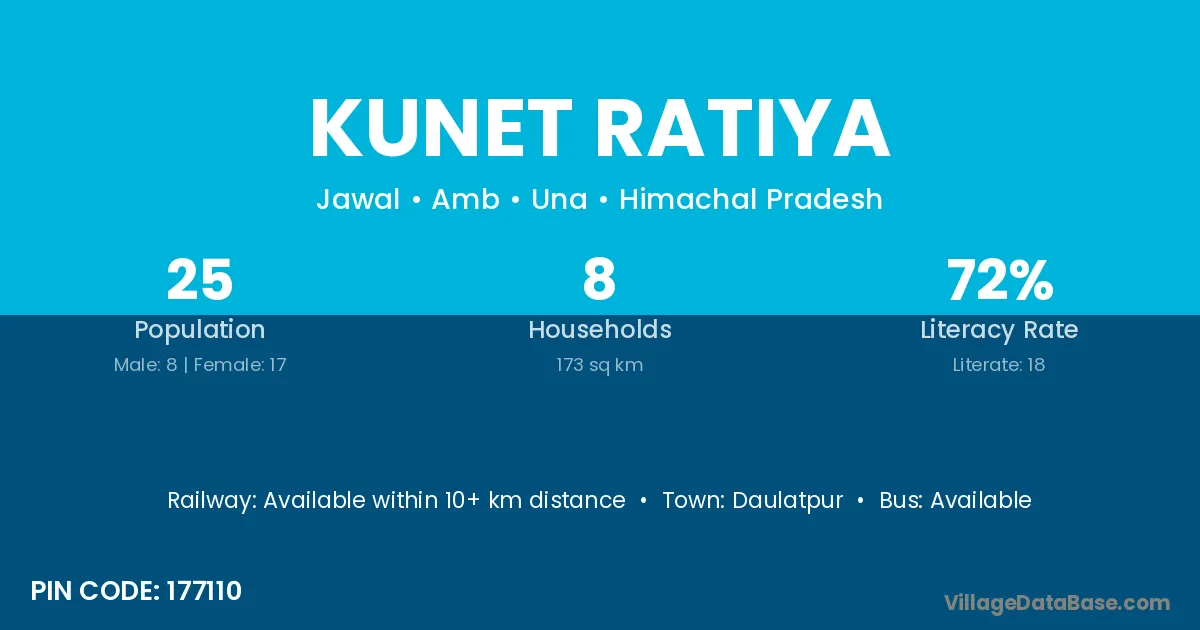 According to Census 2011 information, the village code of Kunet Ratiya village is 177110.