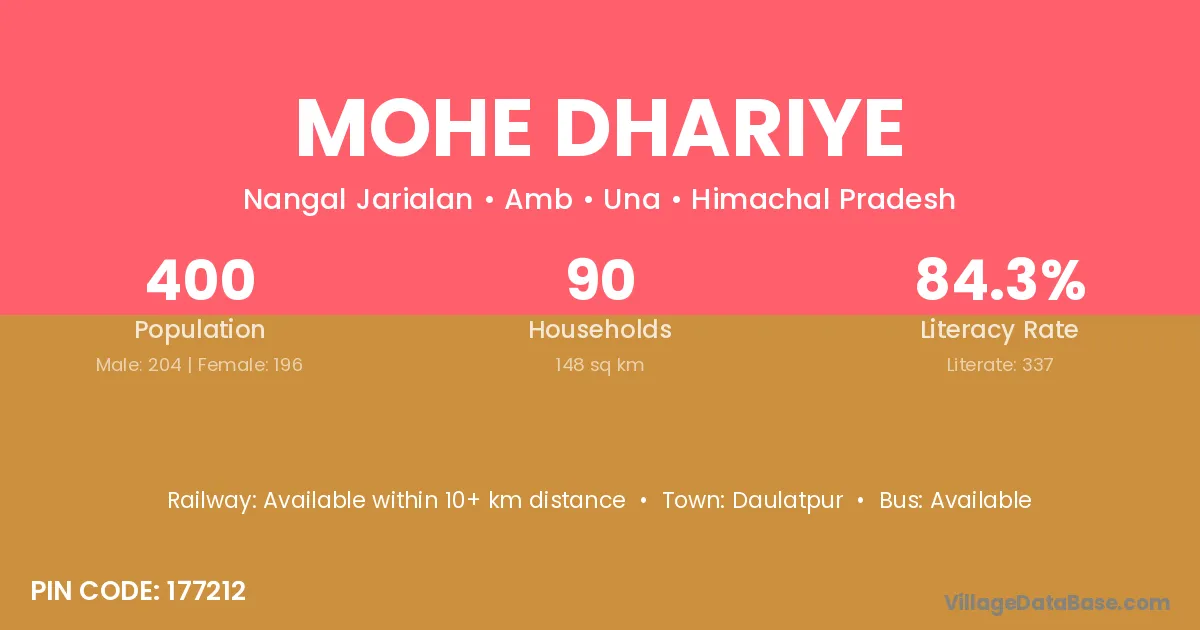 Mohe Dhariye village has a total population of 400 people, of which 204 are males and 196 are females.