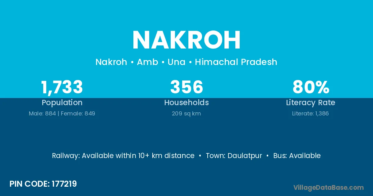 Nakroh village has a total population of 1,733 people, of which 884 are males and 849 are females.