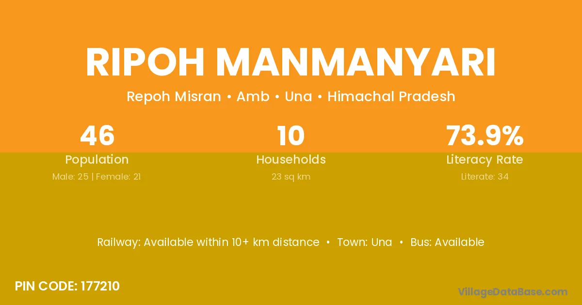 Ripoh Manmanyari village has a total population of 46 people, of which 25 are males and 21 are females.