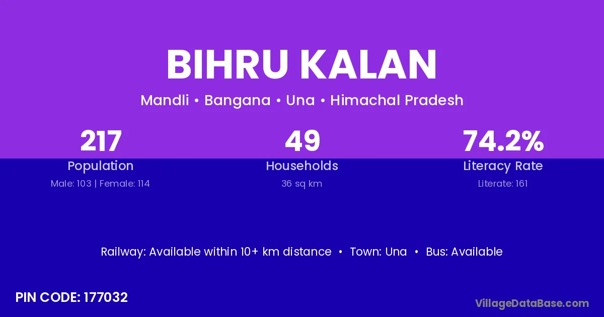 Bihru Kalan village has a total population of 217 people, of which 103 are males and 114 are females.