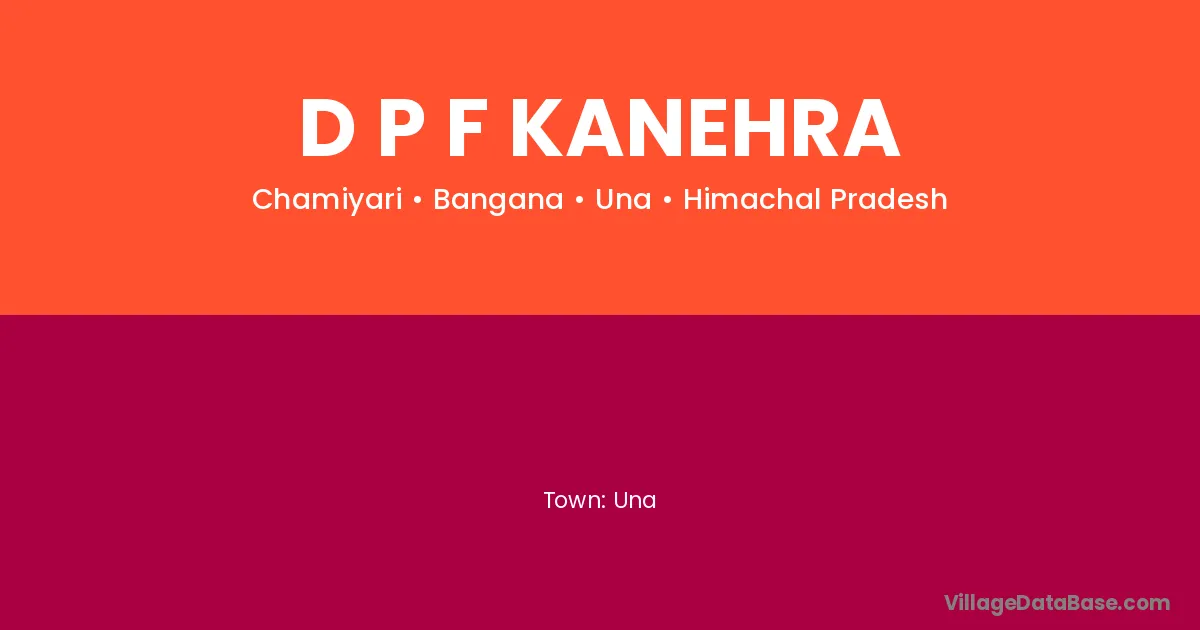 D P F Kanehra village is located in the Bangana Tehsil of the Una district in Himachal Pradesh .