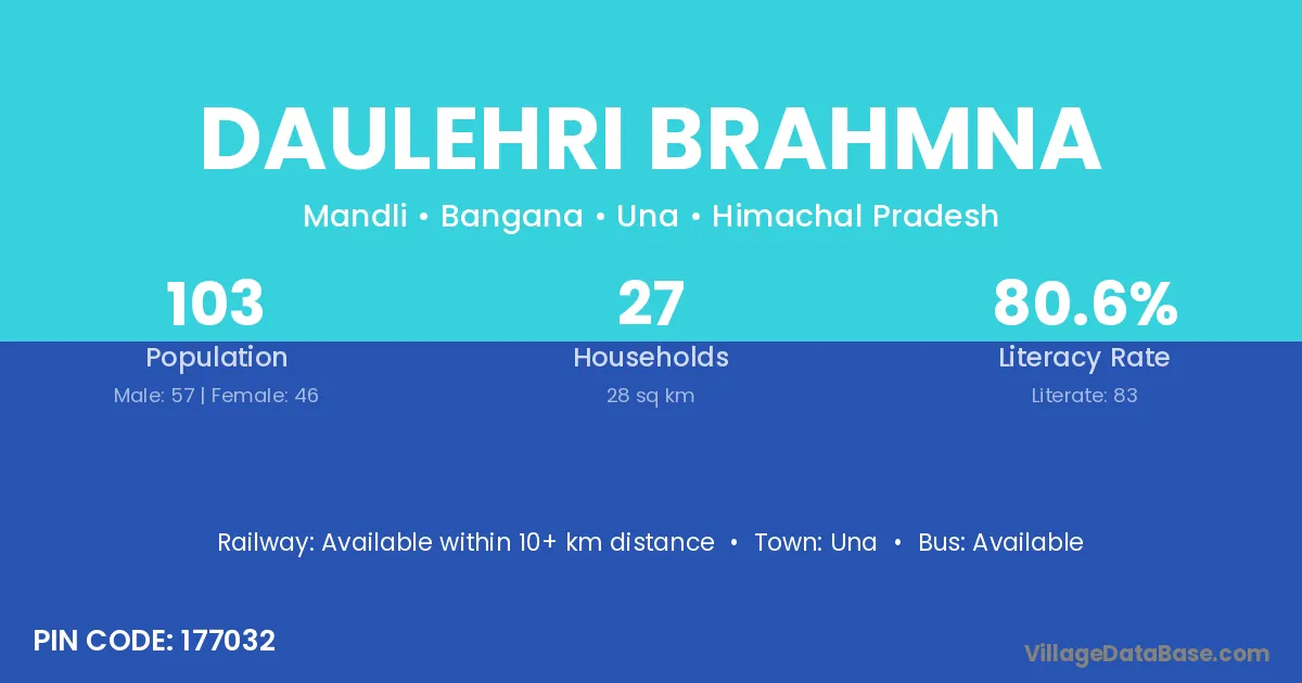 Daulehri Brahmna village has a total population of 103 people, of which 57 are males and 46 are females.