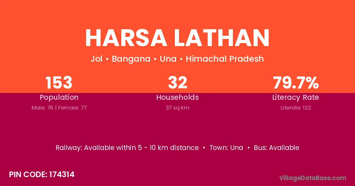 Harsa Lathan village has a total population of 153 people, of which 76 are males and 77 are females.