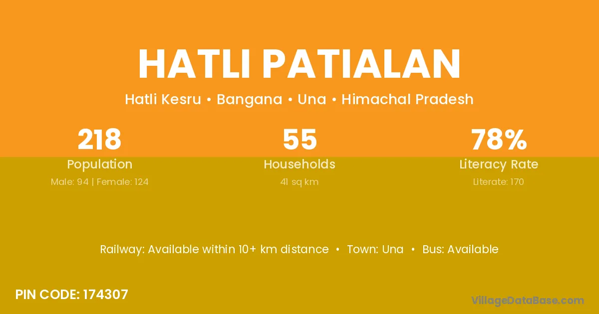 Hatli Patialan village has a total population of 218 people, of which 94 are males and 124 are females.