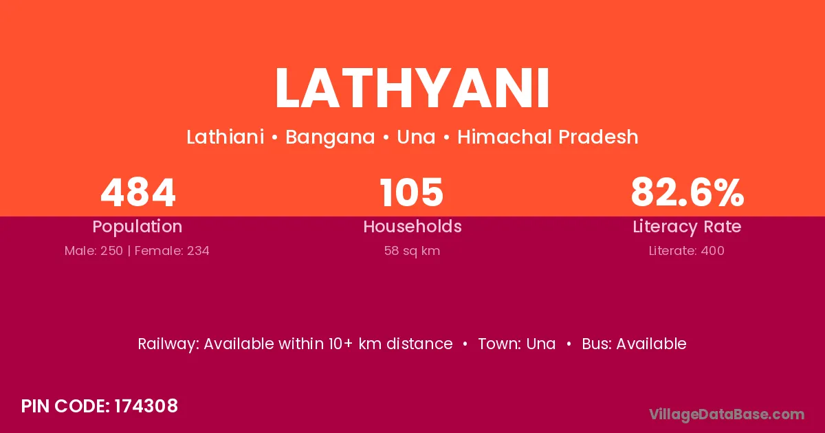 According to Census 2011 information, the village code of Lathyani village is 174308.