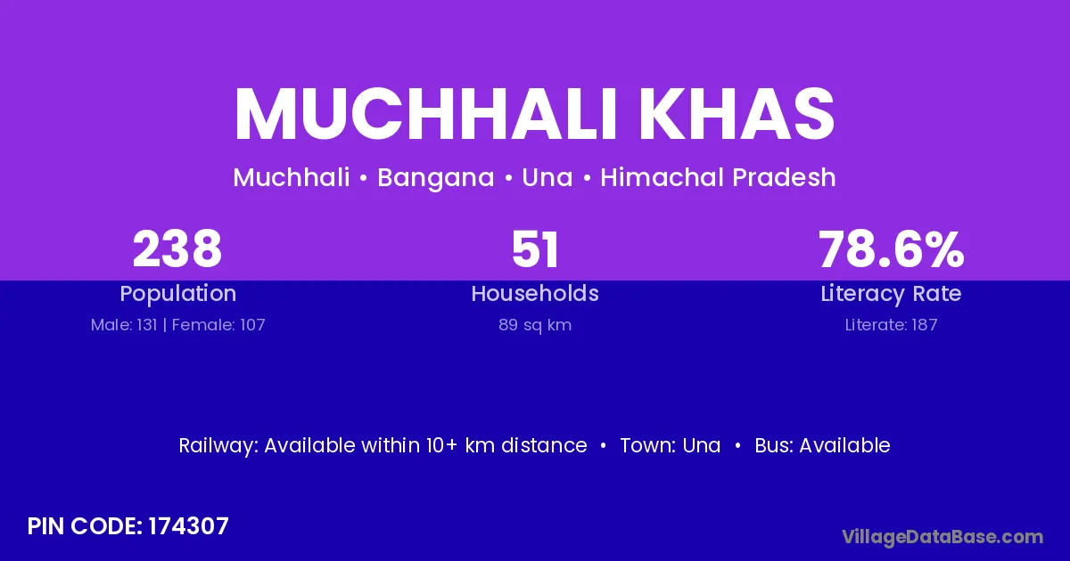 Muchhali Khas village has a total population of 238 people, of which 131 are males and 107 are females.