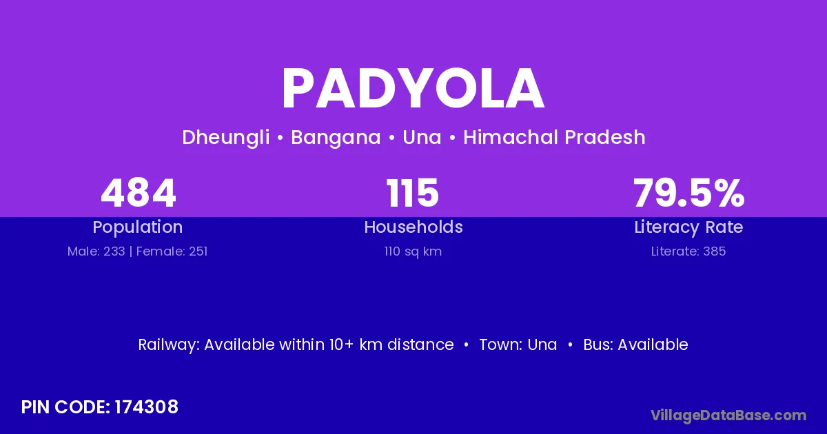 Padyola village has a total population of 484 people, of which 233 are males and 251 are females.