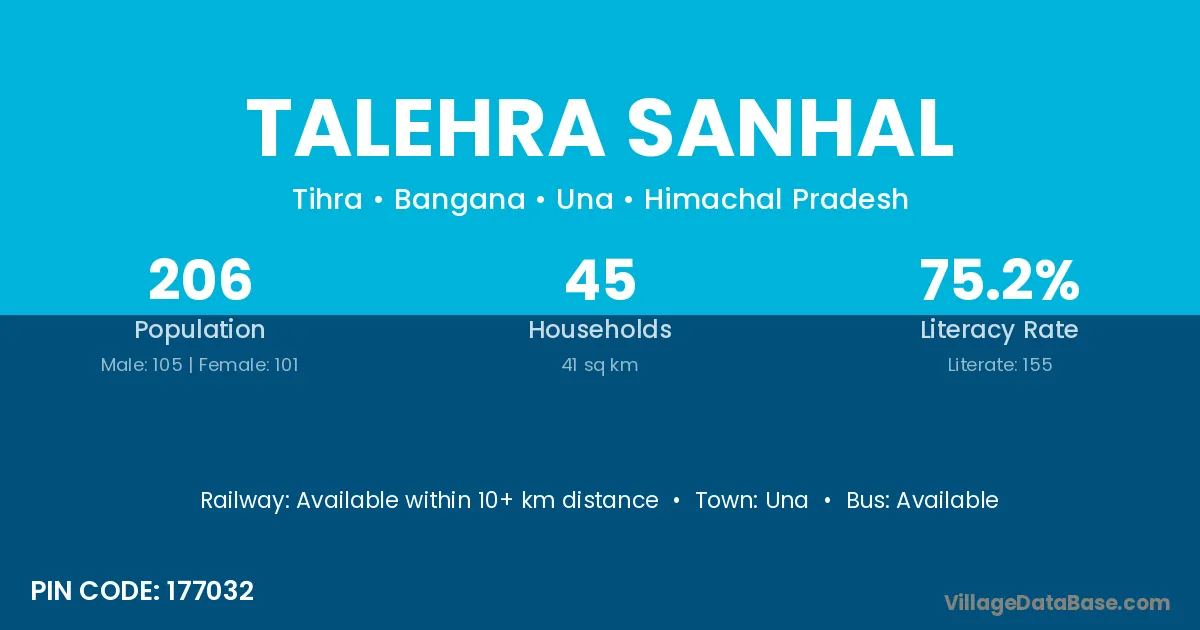 Talehra Sanhal village has a total population of 206 people, of which 105 are males and 101 are females.