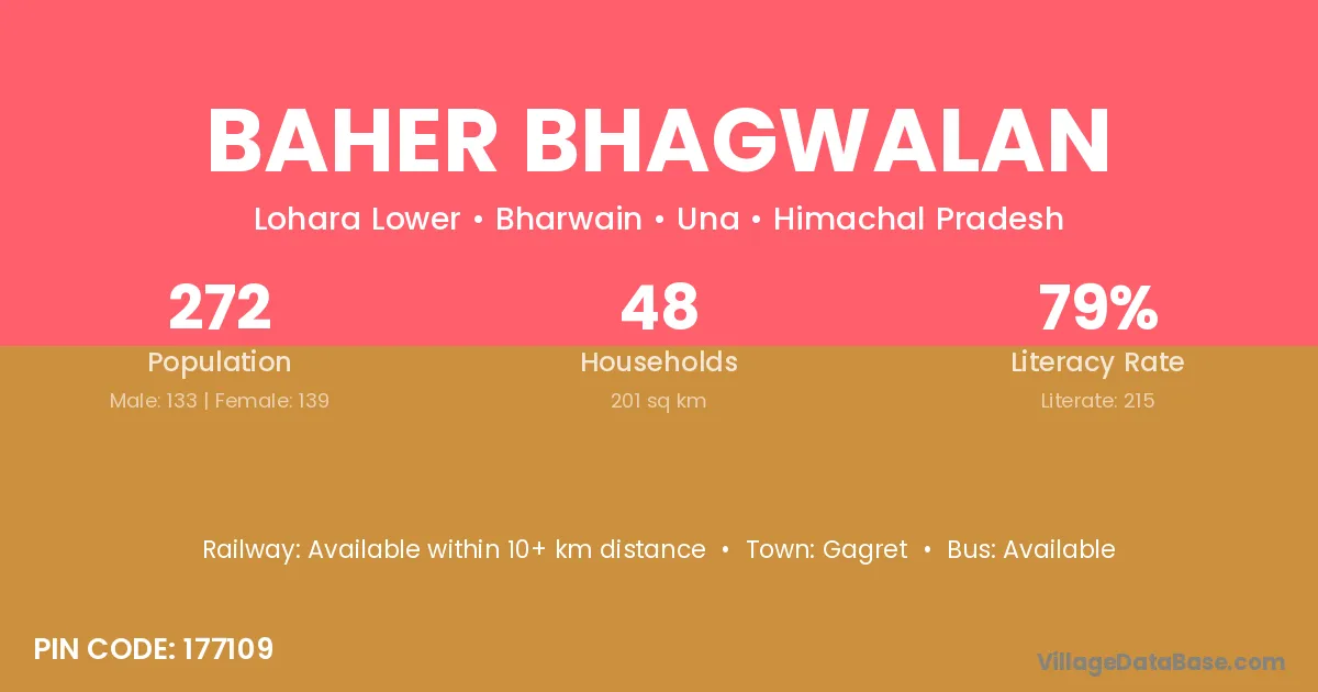 Baher Bhagwalan village has a total population of 272 people, of which 133 are males and 139 are females.