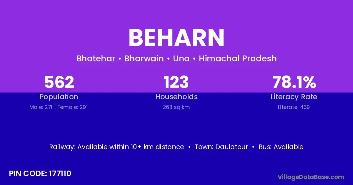 According to Census 2011 information, the village code of Beharn village is 177110.