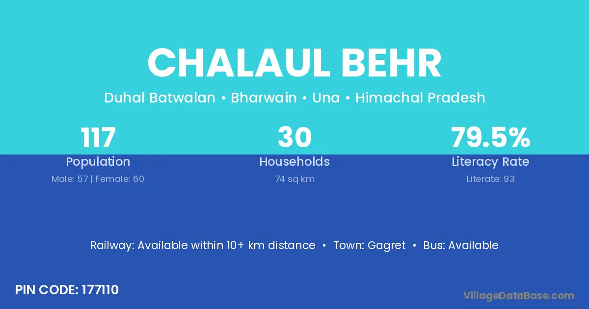 Chalaul Behr village has a total population of 117 people, of which 57 are males and 60 are females.