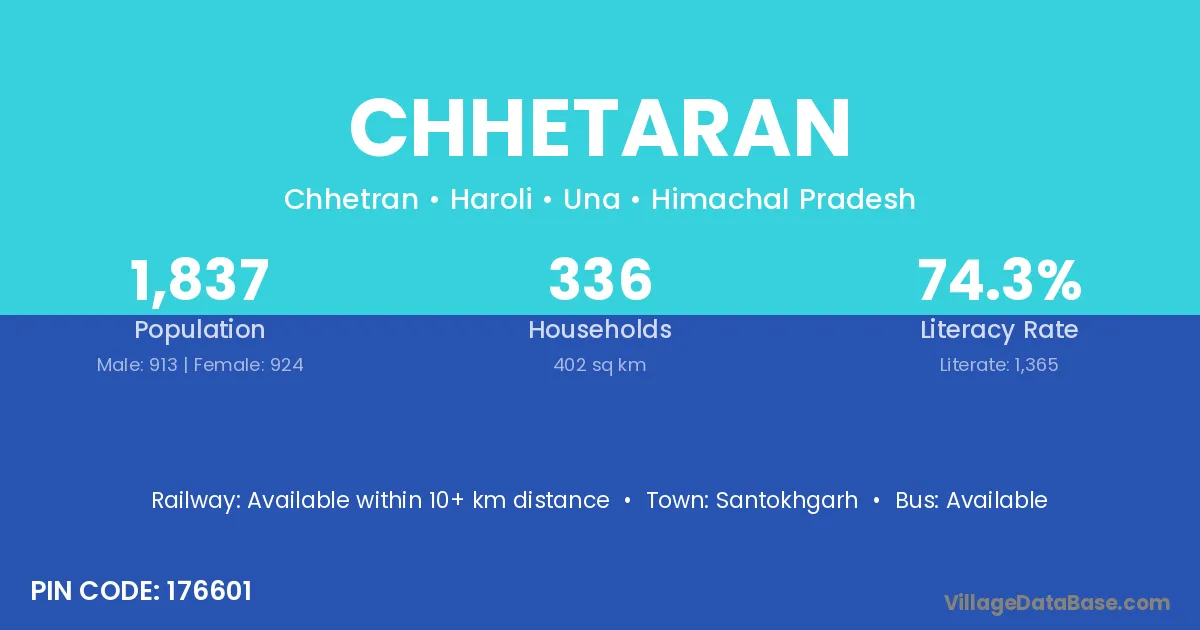 Chhetaran village has a total population of 1,837 people, of which 913 are males and 924 are females.