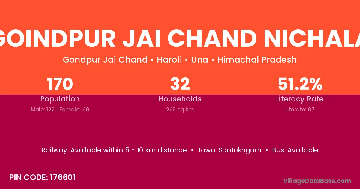 Santokhgarh is the nearest town to Goindpur Jai Chand Nichala village for major economic activities