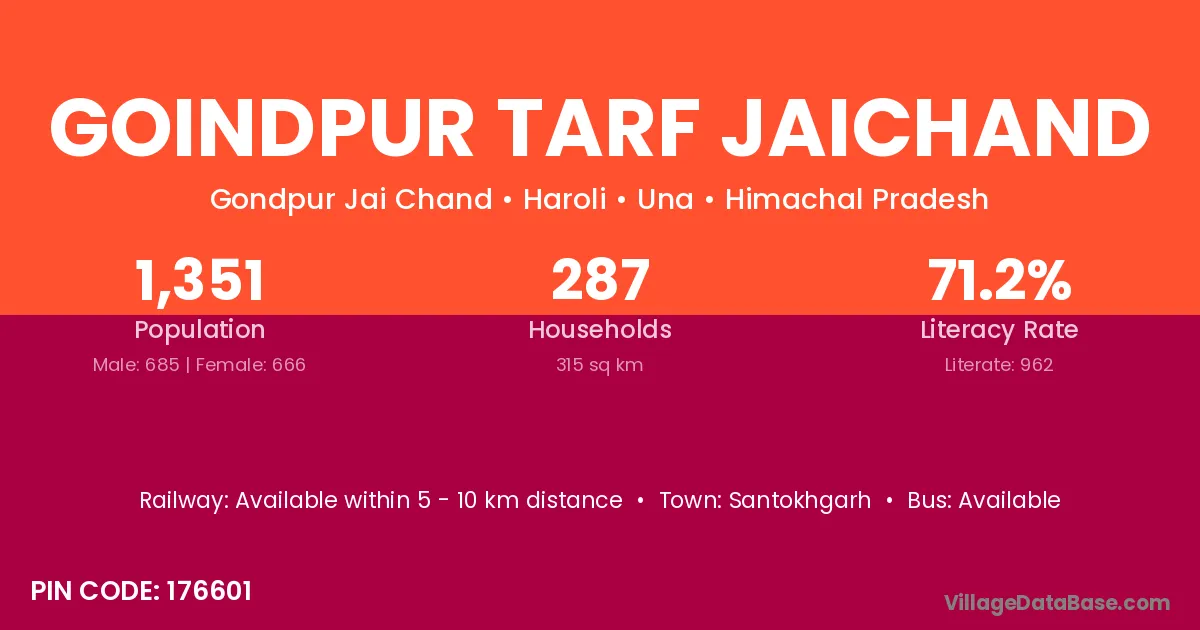 Goindpur Tarf Jaichand village has a total population of 1,351 people, of which 685 are males and 666 are females.