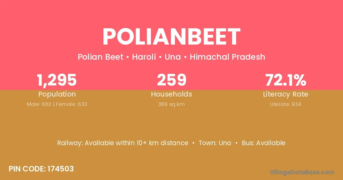 Polianbeet village has a total population of 1,295 people, of which 662 are males and 633 are females.