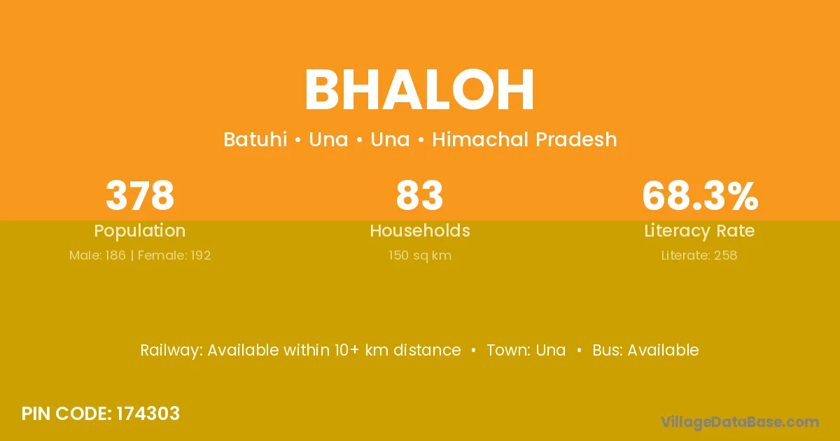 Bhaloh village has a total population of 378 people, of which 186 are males and 192 are females.