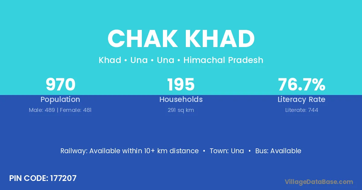 Chak Khad village has a total population of 970 people, of which 489 are males and 481 are females.