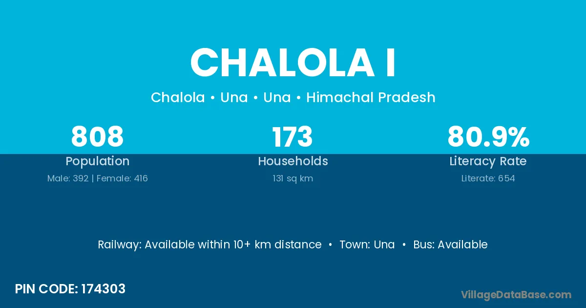 Chalola I village has a total population of 808 people, of which 392 are males and 416 are females.