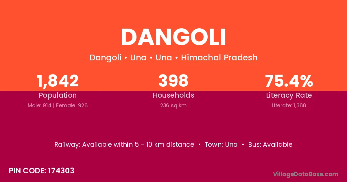 Dangoli village has a total population of 1,842 people, of which 914 are males and 928 are females.