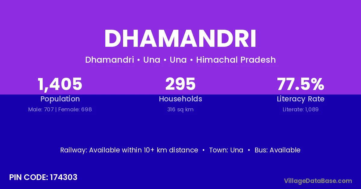 Dhamandri village has a total population of 1,405 people, of which 707 are males and 698 are females.