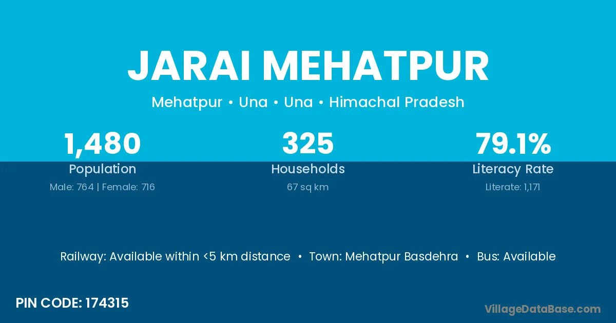 Jarai Mehatpur village has a total population of 1,480 people, of which 764 are males and 716 are females.
