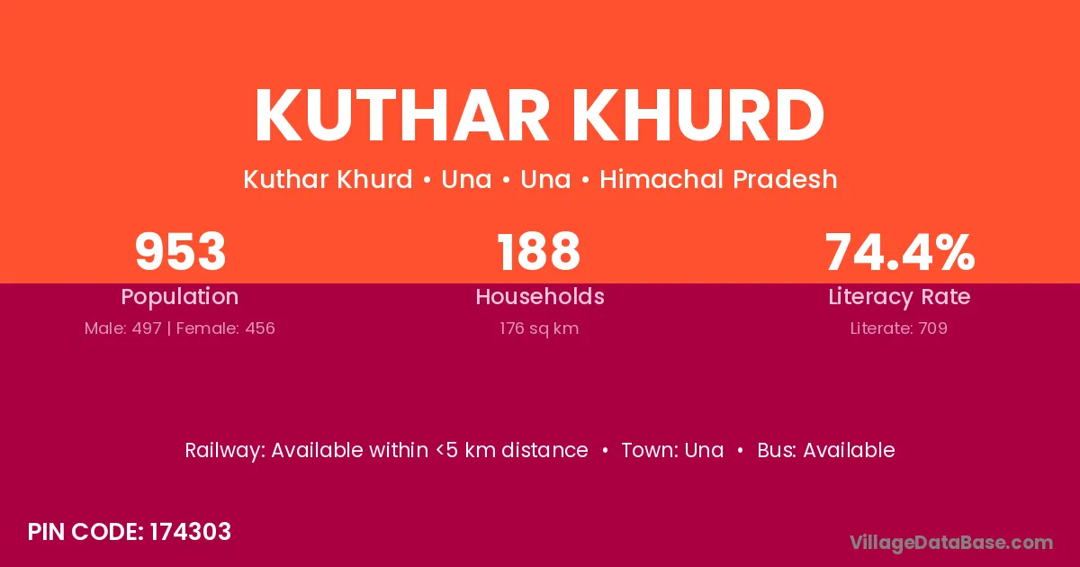 Kuthar Khurd village has a total population of 953 people, of which 497 are males and 456 are females.
